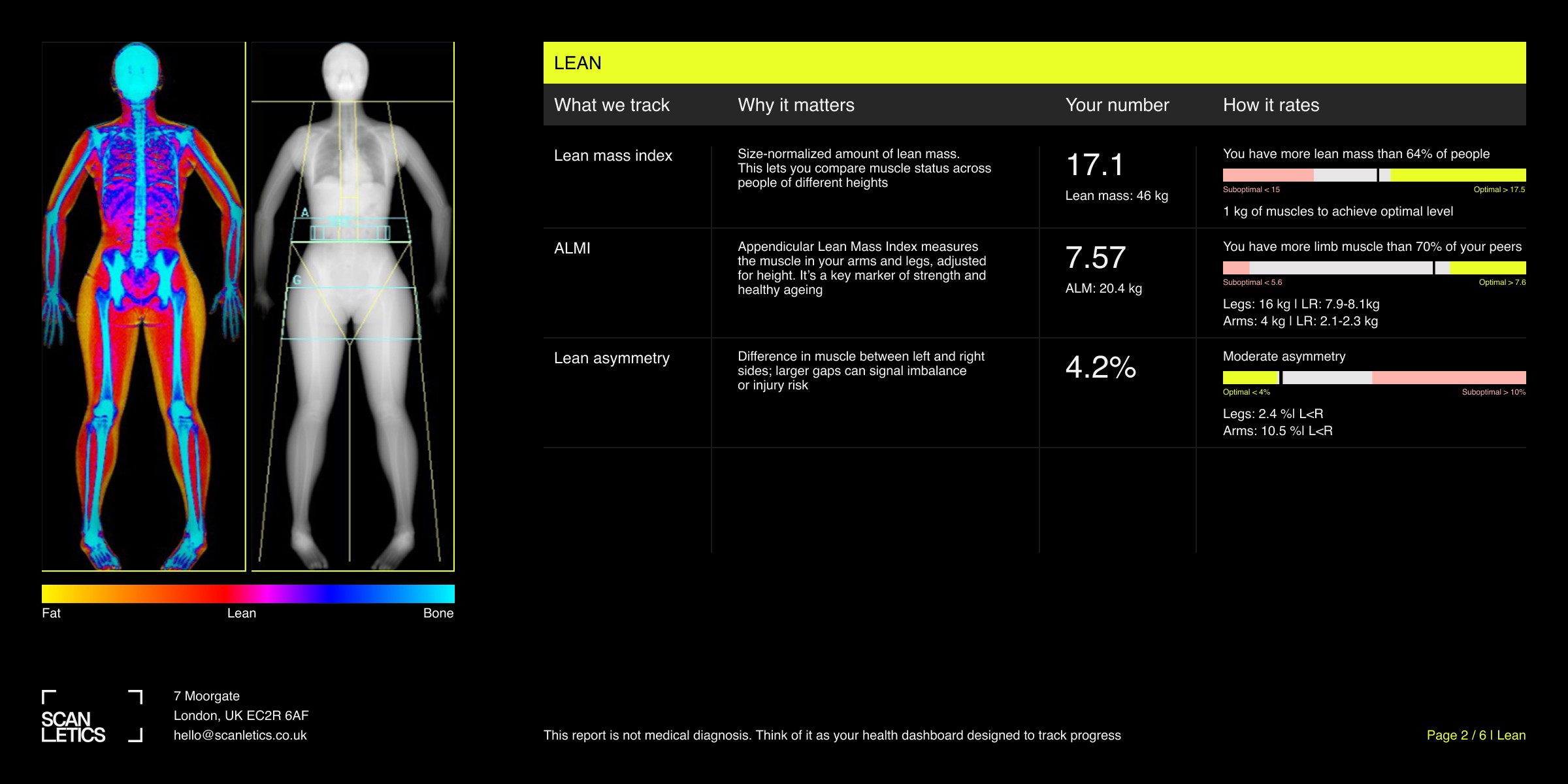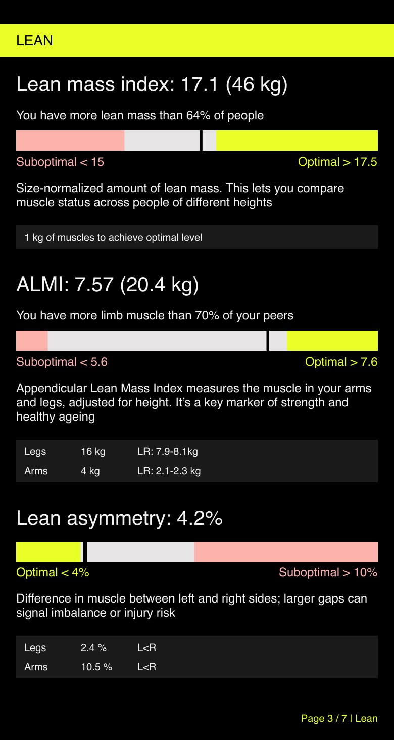 Actionable body composition insights with gold-standard DEXA scans. Lose fat, build muscle, optimise for longevity